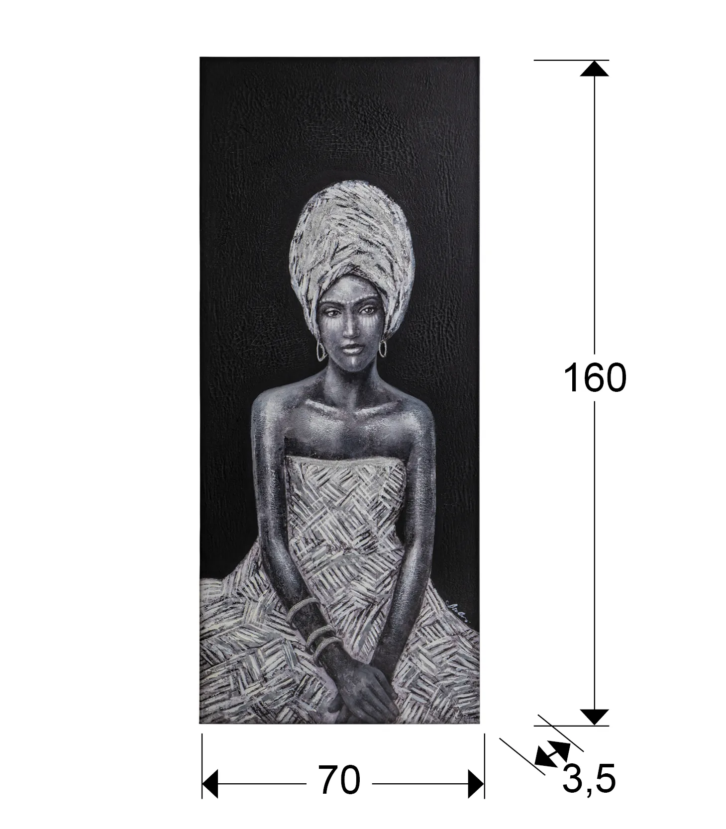Картина ·JOHARI· е изработена от висококачествен акрил и е поставена на стягаща рамка, което я прави подходяща за всяка стая. С размери 70 см ширина, 160 см височина и дебелина 3,5 см, тя е не само стилна, но и лесна за монтаж.