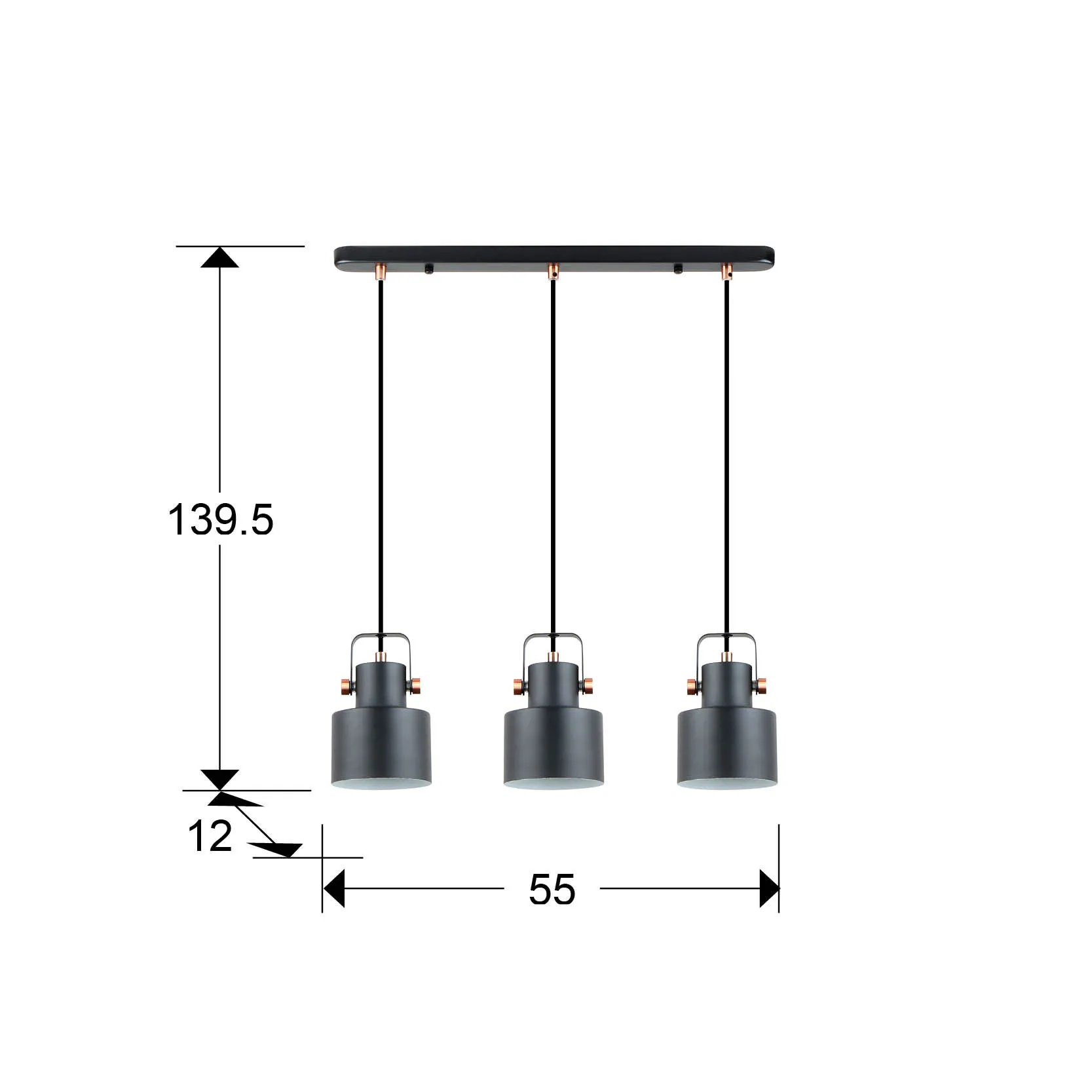 Лампата I3-ERIKA предлага елегантен дизайн с три светлинни тела, изработени от метал с матово черно покритие и сатенени медни детайли. Регулируемите абажури позволяват персонализиране на осветлението и височината.