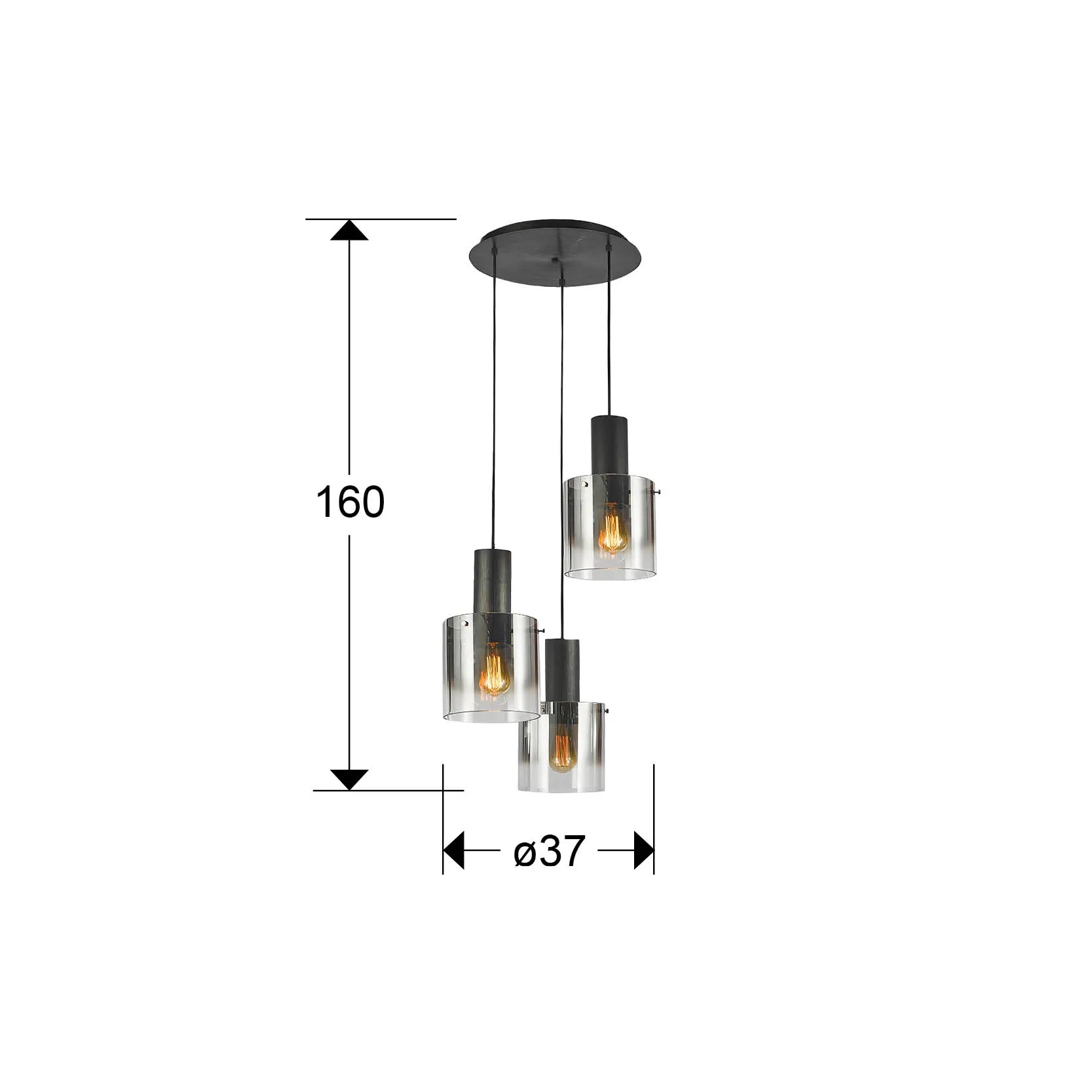 Тази лампа е изработена от метал с финал в сатенено черно, което добавя стил и елегантност на всяко помещение. Трите абажура от димно стъкло разпределят светлината нежно и създават уютна атмосфера.