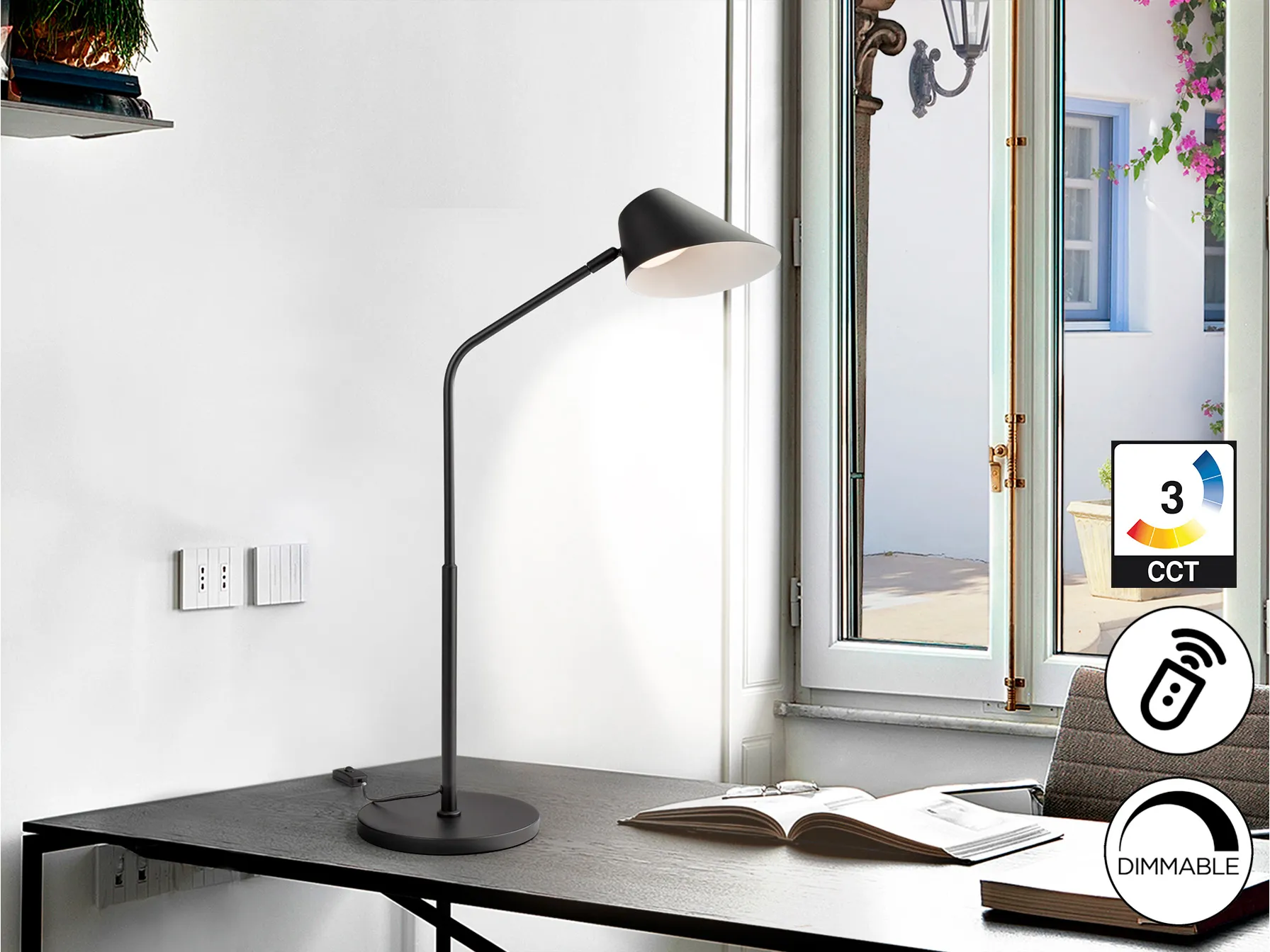 Настолната лампа ESINO е идеалното допълнение за вашето пространство. С елегантен матов черен завършек и опален дифузер, тя предлага стил и функционалност.