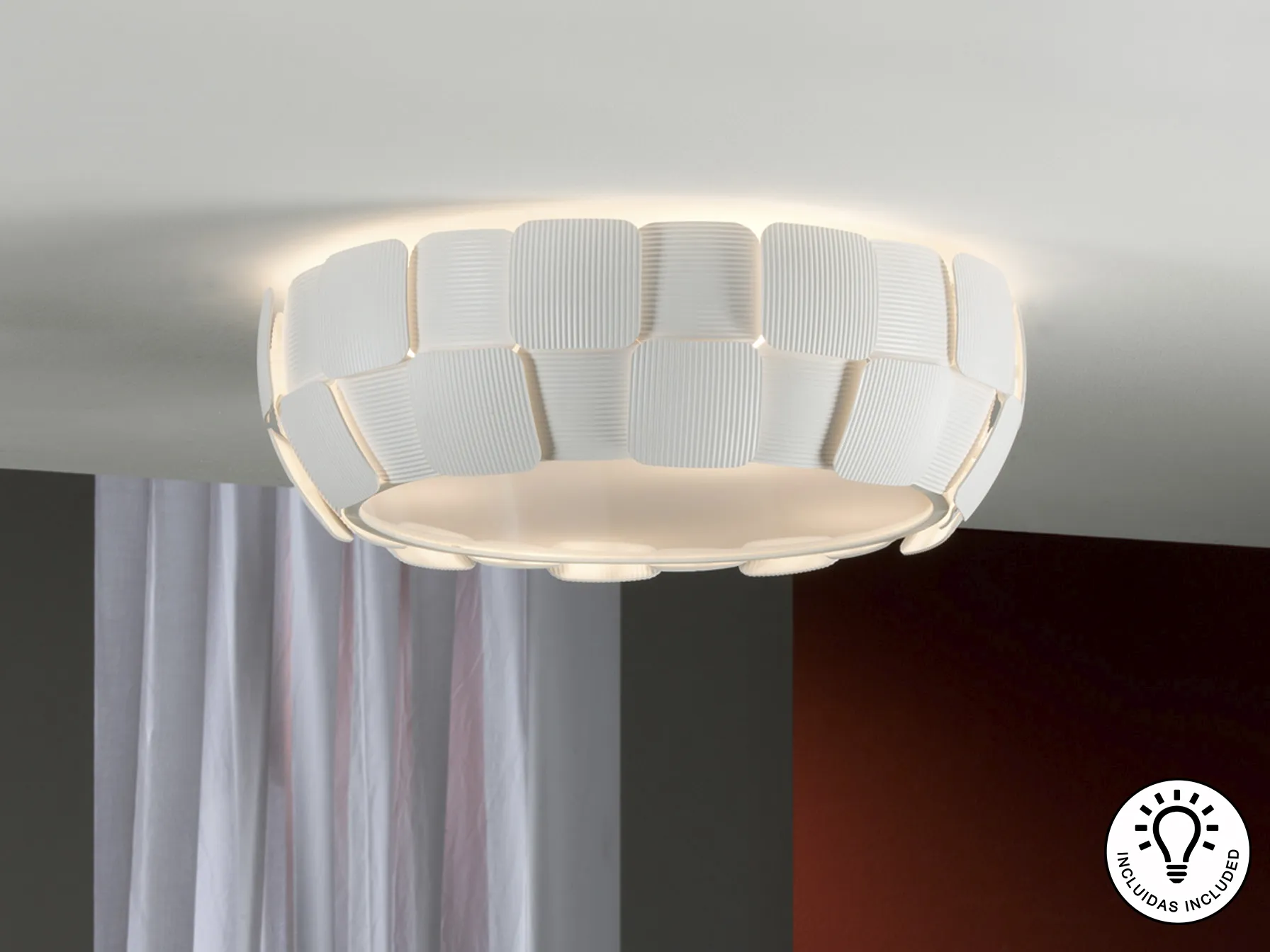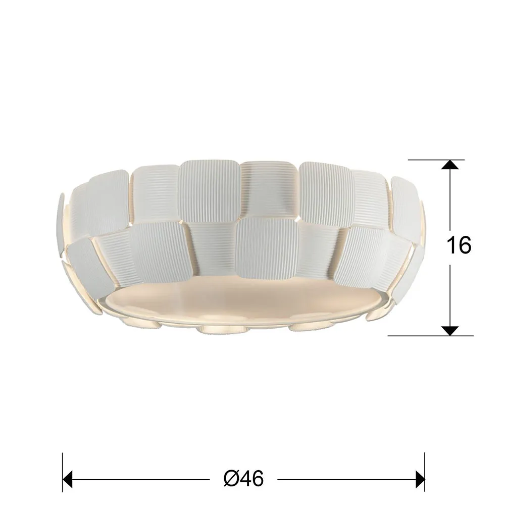 The Quios 4-Light Ceiling Lamp is designed to enhance your home with its contemporary aesthetic and functional brilliance. This elegant fixture boasts a unique shade made from durable polycarbonate plates with a textured corrugated surface, ensuring both style and longevity. The frame is crafted from metal and finished in a sophisticated matte off-white, making it an ideal addition to various interior styles.